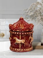 بانکه کوچک درب‌دار به شکل کاروسل فانتزی، یک عنصر دکوراتیو فوق‌العاده است که می‌تواند به روش‌های مختلفی در دکوراسیون داخلی شما مورد استفاده قرار گیرد. طراحی منحصر به فرد این بانکه، جلب توجه می‌کند و به آن شخصیتی خاص می‌بخشد.